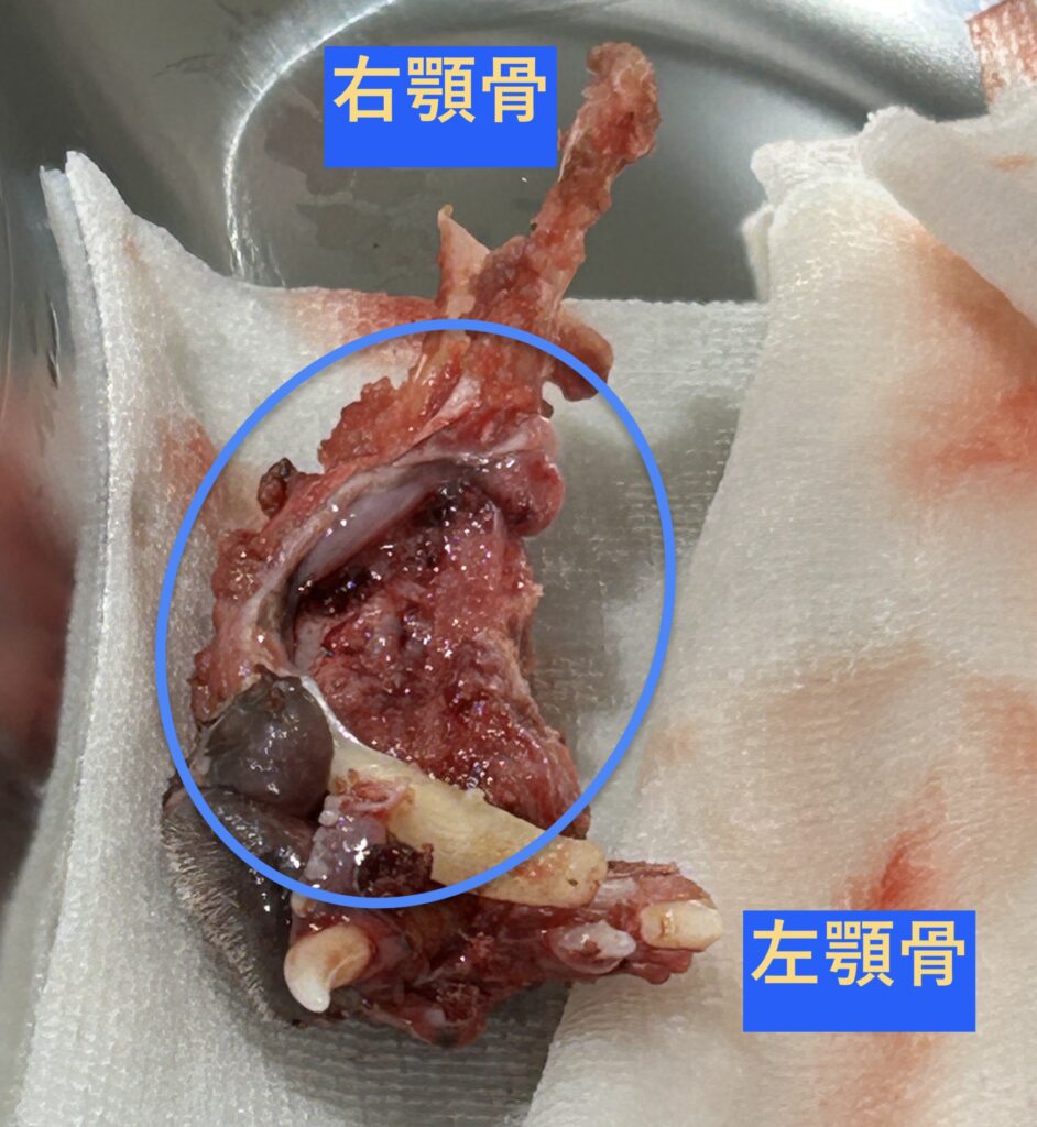 飼い主様は侵襲の高い手術は望まれませんでしたが、患者の全身状態が悪いことや、出血もコントロールできず貧血が進行していた状況もあり、緩和的な手術として確認できる病変部の摘出を行いました。(顎骨3/4)