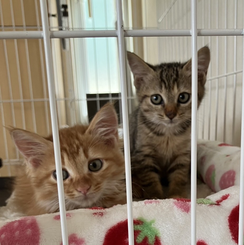 ↓チャトラの男の子&キジトラの女の子、いずれも生後2ヵ月過ぎぐらい。この2匹は兄妹です
