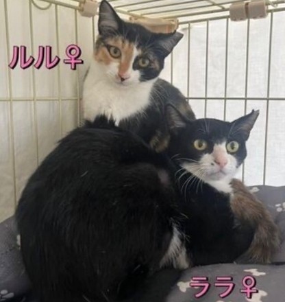 ↓ララちゃん(右)、ハチワレ、2歳齢、女の子